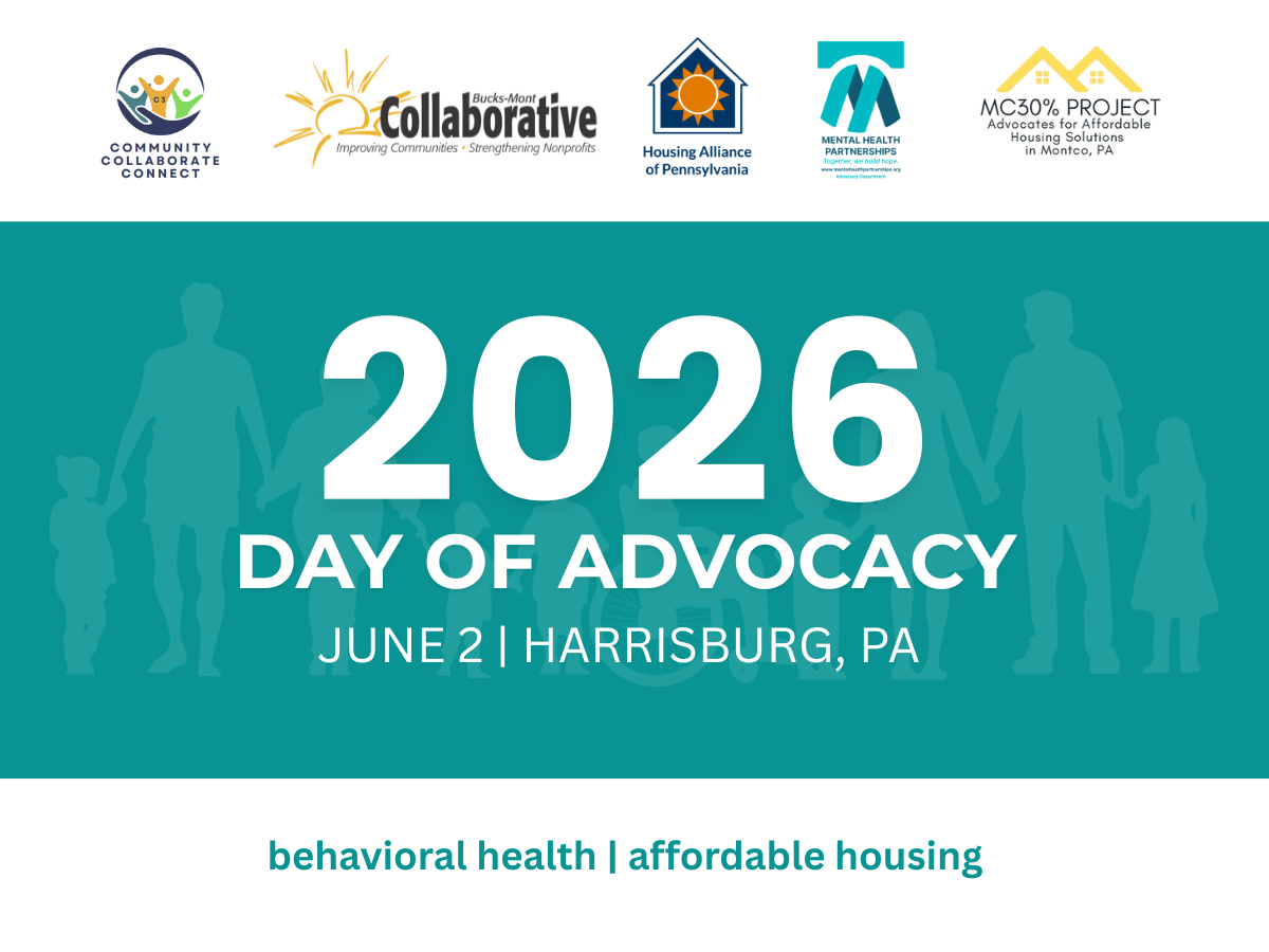02 June 9:00 am - 3:00 pm 2026 Day of Advocacy Organizer The Bucks-Mont Collaborative Phone 607-425-8898 Email [email protected] Website https://bucksmontcollab.org/ REGISTER Location Pennsylvania Capitol 501 N 3rd St, Harrisburg, PA 17120 Category Housing Alliance of PennsylvaniaICNMental Health PartnershipsMontco 30% ProjectThe Bucks-Mont CollaborativeTri-county community network More Info Read More Share this event + Add to Google Calendar + iCal / Outlook export