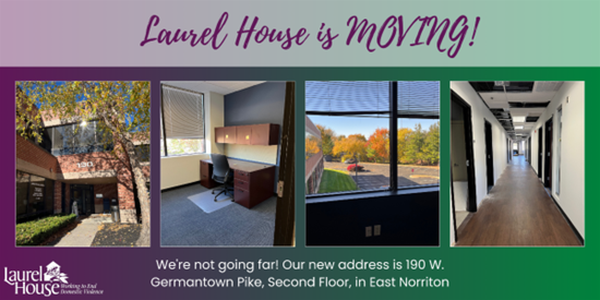 Laurel House is relocating to a new building within their current plaza. This new space will allow Laurel House to provide a designated space for walk-in clients, a bigger pantry, and more.