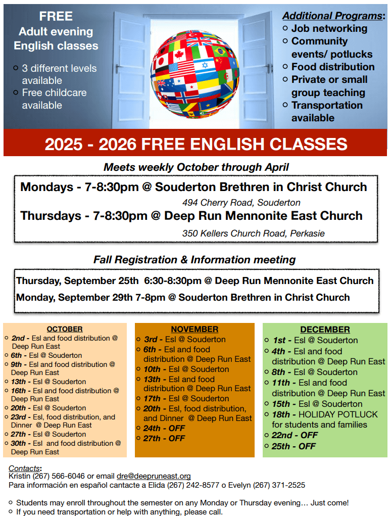 - Harleysville: 1st and 3rd Wednesdays, 9:30am – 2:00pm by appt.