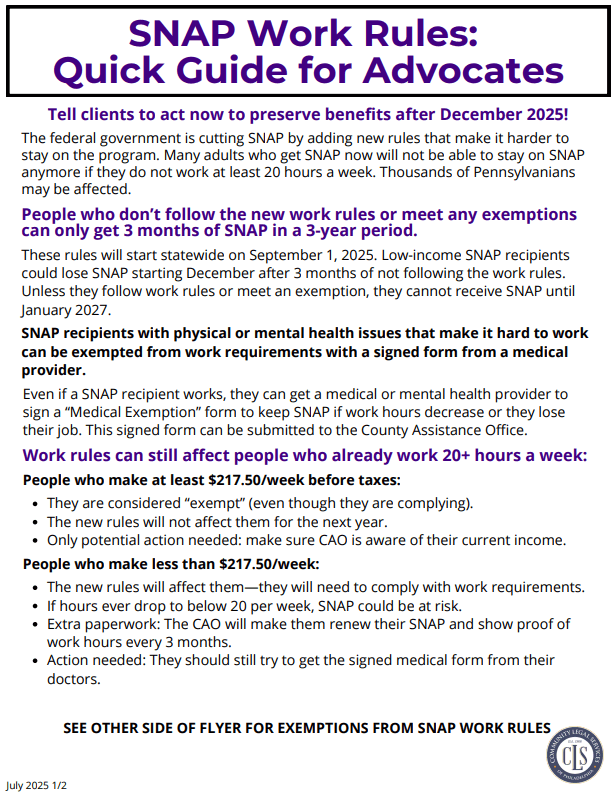 SNAP Work Rules | Quick Guide for Advocates
