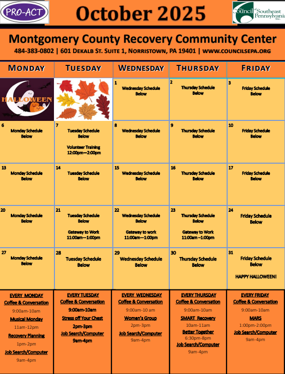 - Mobile Recovery Clinic: October 1, 8, 15, 22, 29