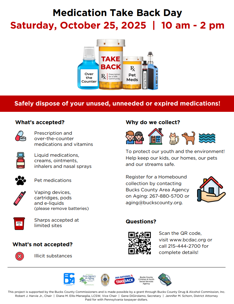 For more information, reach out to Bucks County Area Agency on Aging at 267-880-5700.