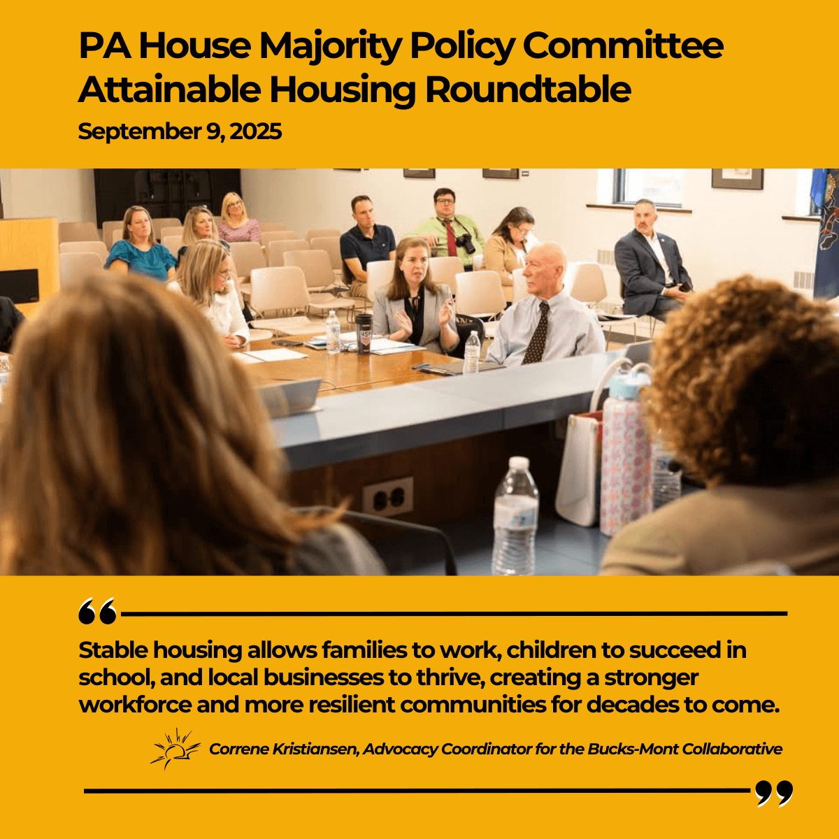 Last month, our Advocacy Coordinator Correne Kristiansen testified before the PA House Democratic Policy Committee about the urgent need for more attainable housing in Bucks and Montgomery Counties—housing for the one in four households who earn too much for assistance but still can’t make ends meet.